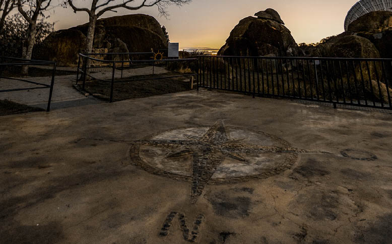 No mirante, a cerca de 1.080 metros de altitude, está a nossa Rosa dos Ventos, lugar onde tratamos de questões relativas aos pontos cardeais e colaterais, sobre os pontos de nascer e pôr do Sol nos solstícios e equinócios. Além das estações do ano, latitude e longitude, polos geográficos e celestes.